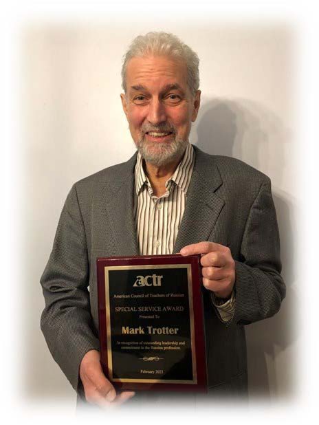 The IU Department of Slavic and East European Languages and Cultures congratulates Mark Trotter on his 2022 Service Award from the American Council of Teachers of Russian. Mark is the long-standing Associate Director of IU's Russian and East European Institute, having begun his appointment in August 2007. You can read the ACTR newsletter here.